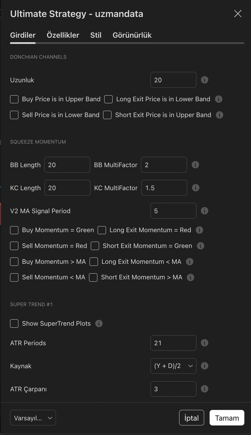 Satın aldığınızda TradingView -> Göstergeler -> Yalnızca-Davetle Erişim kısmına premium "Ultimate Strategy - uzmandata" indikatörü eklenir.