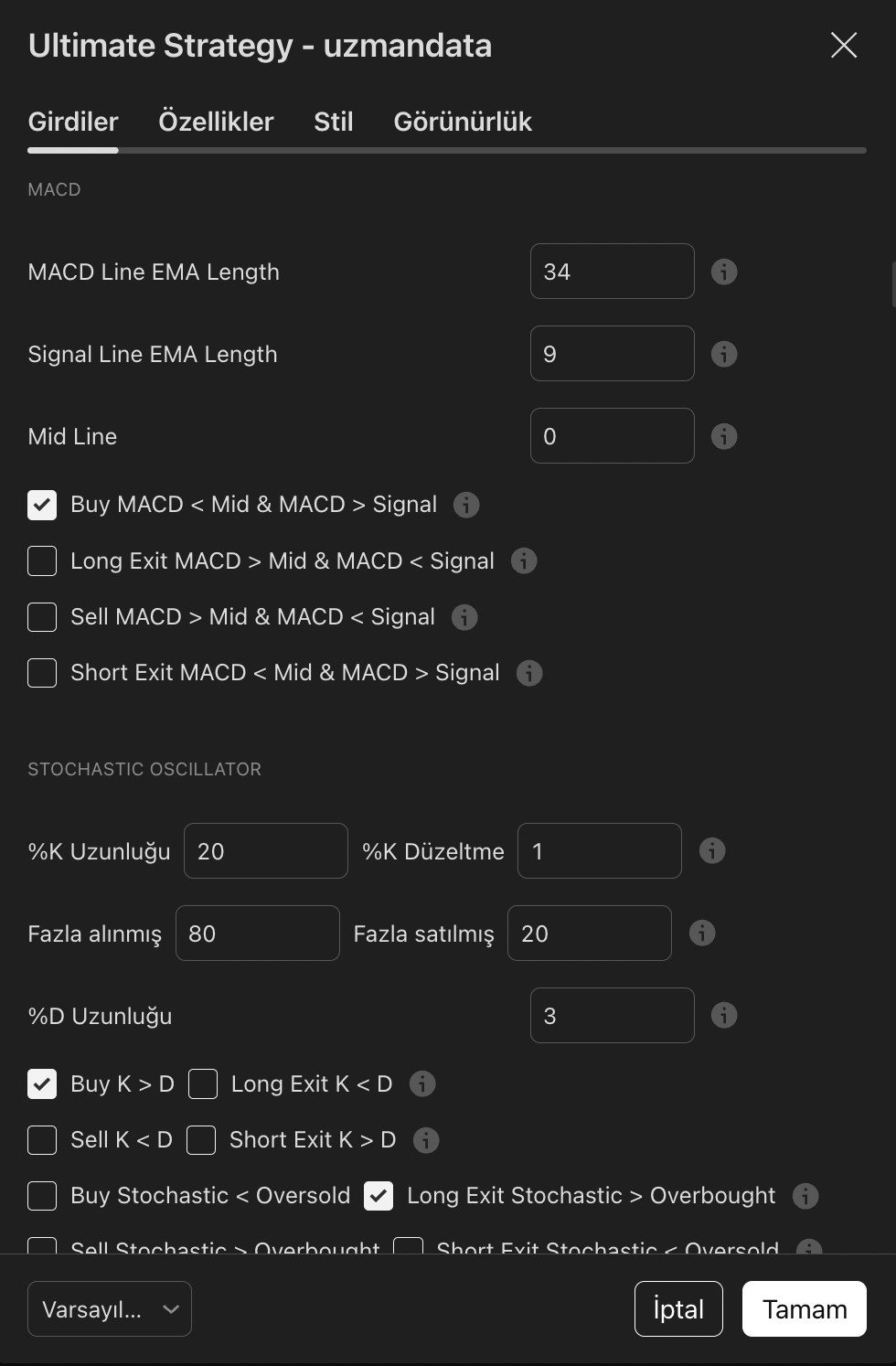 Strateji indikatörünün farkı ise duygusal davranmanın önüne geçerek birden fazla indikatörden alım veya satım sinyallerini alarak işlemlere girer.
